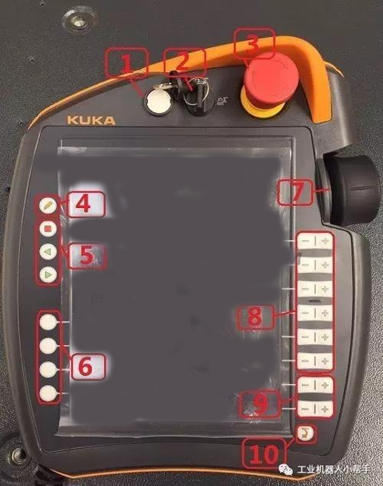 1.機器人示教器線纜熱插拔按鈕(按此鍵后,控制柜不用關(guān)機便可拔掉示教器)。